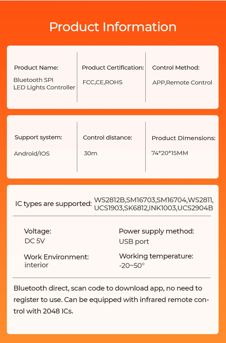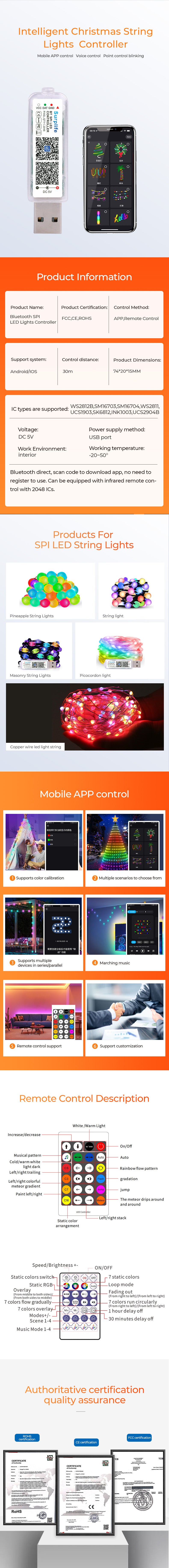 Bluetooth SPI LED Lights Controller ZJ-BCUAS-HCQ2-1K-S