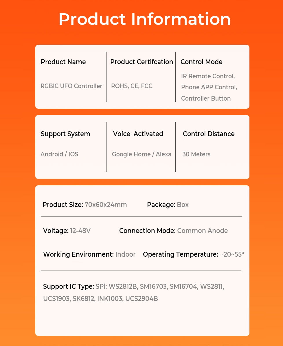 6. Supported Driver lC: SP:WS2812B, SM16703, SM16704, WS2811, UCS1903, SK6812, INK1003, UCS2904B