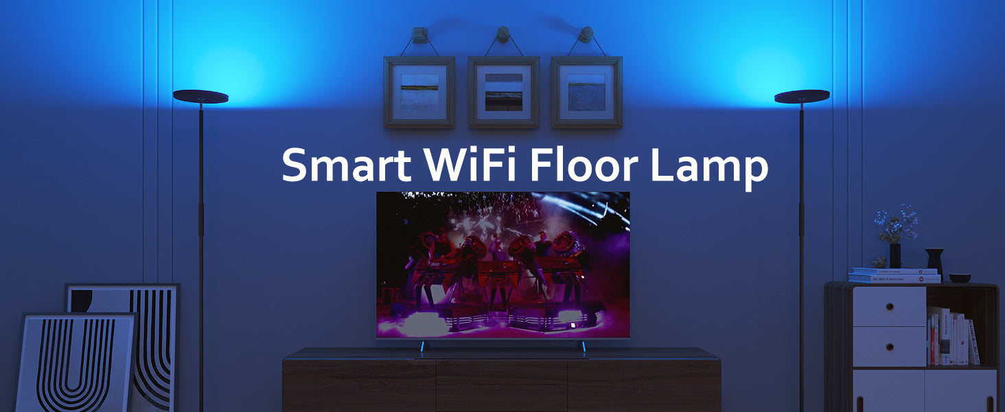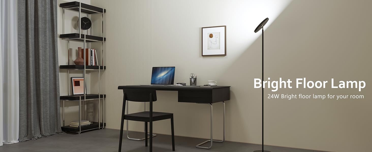 Modern Floor Lamp, WiFi Remote Modern Tall Standing Light, 2000LM (Black)