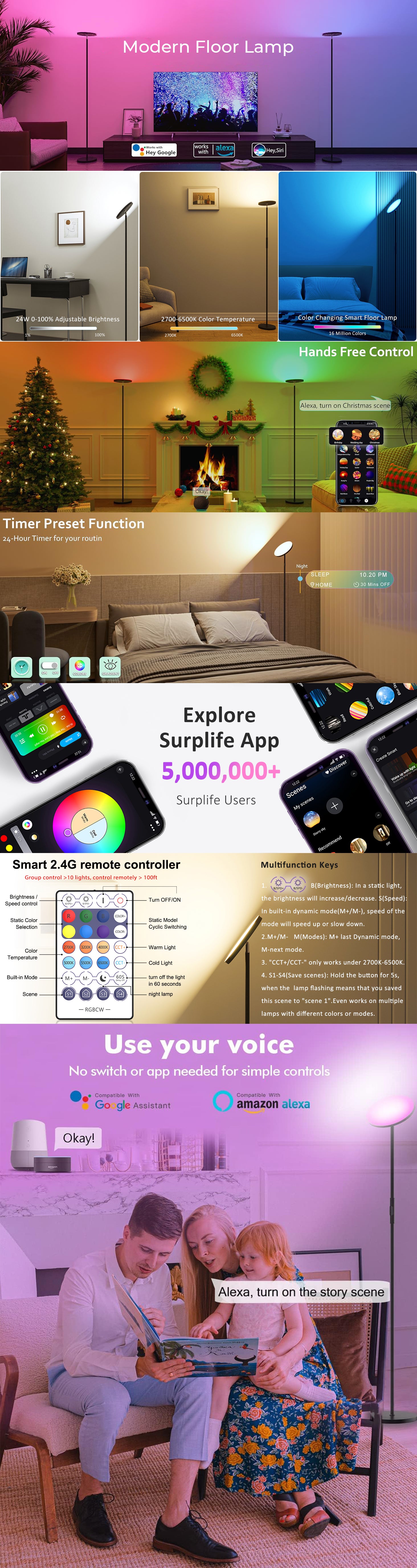 Specific Uses For Product: WiFi Bluetooth Surplife App Control, AppAlexa Voice Control, Adjustable Color Temperature, Dimmable, Timer